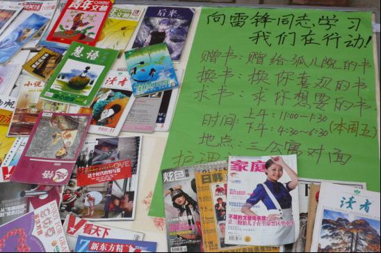3月2日,在我院团委”学习雷锋同志,我们在行动”的号召下, 护理学院举办”赠书 ·求书· 换书” 活动,分别于当天中午11:00~1:30和下午4:30~6:00在三公寓对面展开。