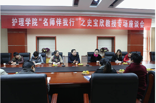 另讯:11月15日上午,史宝欣教授在综合楼二楼大会议室与护理学院全体教职员工及学生代表召开座谈会,薛松梅等人就护理学院专业设置与史宝欣教授展开了探讨。史教授指出,护理专业不宜在招生之初开展多个学科,而应该在教学后期面对社会需要进行系统分化;专业设置应面向社会需求而非盲目跟风。史宝欣还对护理学院老师提出的如何培养和提高在校生人文素质等问题做出了细致解答。