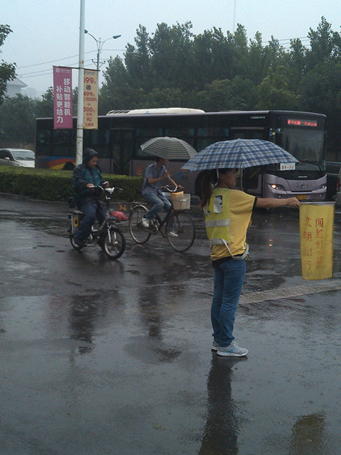 在指挥交通的同时,志愿者们耐心向行人讲解交通知识,为行人指路以及尽我们所能帮助他们解决困难,赢得了广大行人的肯定与赞扬。不少行人为我们送上甘甜的矿泉水说:“你们做的真认真啊!一定要注意防晒,多补充点水分和盐分,来来来,喝点水,不要中暑了。”关心肯定的话语,让志愿者们更加认真努力地去维持交通秩序、帮助行人、宣传交通知识。