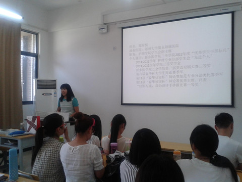 2014年6月8日下午,我院品牌职业规划教育 “给你一块基石,让你看的更远”活动在第一教学楼C204举行,此次活动特邀我院本届毕业生:以优异的成绩考入山西医科大学、广东药学院的“考研之星”马梦珂和翟源惠及顺利进入郑大第五附属医院、广东省人民医院的“就业之星”郜海月和王谦,他们分别为同学们讲授“考研、就业经验”以及未来“考研、就业的发展形势”,我院李富政老师出席活动,百余名同学认真聆听并积极参与其中。