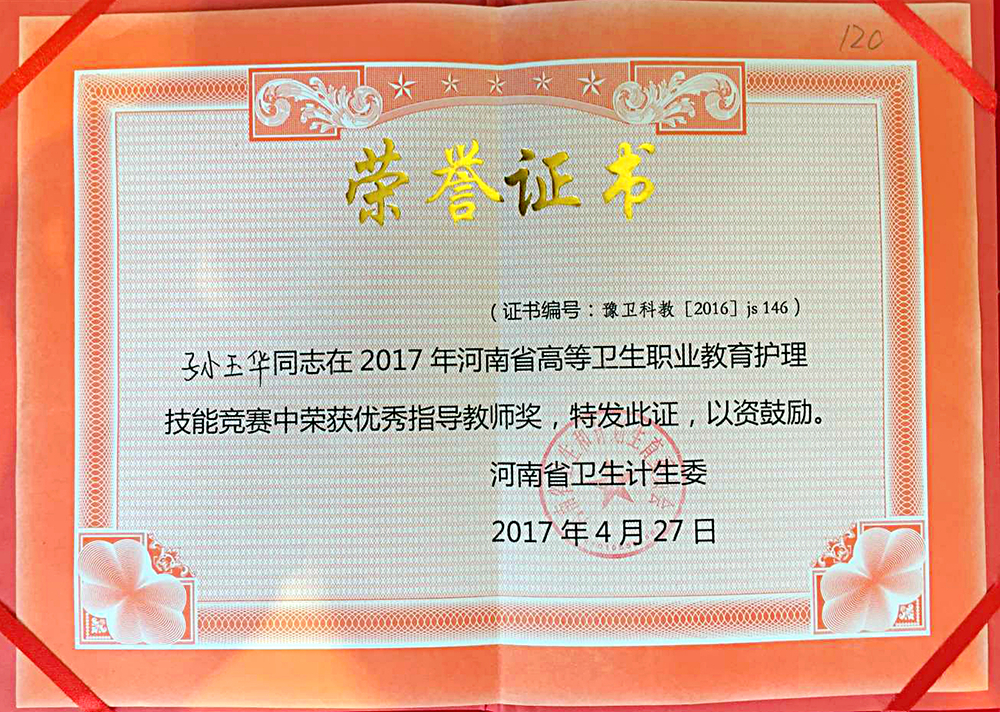 4月24日,2017年河南省高等卫生职业教育护理技能竞赛在信阳职业技术学院举办。经过与28名参赛队,112名选手的激烈角逐,我院1名参赛选手荣获个人二等奖,3名选手获得个人三等奖,1名教师荣获优秀指导教师奖,同时我院获得团体三等奖。