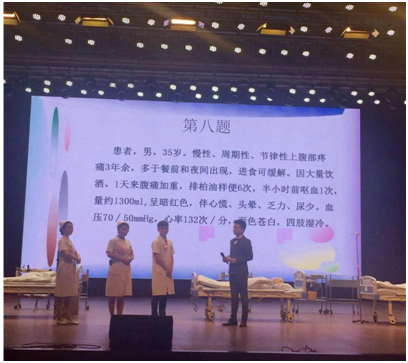 随后,精彩激烈的比赛开始了。本次比赛充分结合临床工作特点,以案例为线索,按照护理程序设置两个环节:健康评估和护理技能操作两部分。健康评估赛站共有8个案例,每三人为一组,共8组,随机抽取案例,进行分析、评估,然后提出主要的护理诊断,并针对首优的护理诊断列出主要护理措施。护理技能赛站设置三项操作:双侧鼻导管吸氧术、密闭式静脉输液术、单人徒手成人心肺复苏术。经过激烈的现场角逐,“胖胖和他的小瘦子们”获得大赛一等奖,“木槿昔年”队和“学医威武”队获得大赛二等奖,“欢乐颂”等获得大赛三等奖。