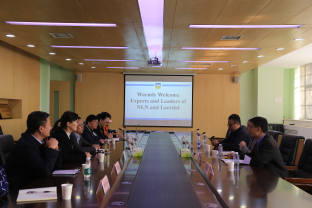 首先,Amy一行在护理学院教授薛松梅等人的陪同下参观了挪度(国际)护理实训中心。随后,双方在行政楼第三会议室进行关于模拟教学的座谈与交流。杨捷院长对于Amy一行表示热烈欢迎,他说,我院已与挪度共同建设了目前国内最先进的护理实训中心,希望借助今天的交流机会,能够把美国的模拟教学本土化,进一步提高我院的护理教学质量,扩大我院的社会影响力。薛松梅教授向Amy一行介绍了我院护理专业的师资、课程设置、对外交流等基本情况。双方围绕着模拟教学的开展以及存在的问题等内容进行深入交流。Amy详细阐述了美国模拟教学的情况,并针对专业教师提出的相关问题进行逐一解答。