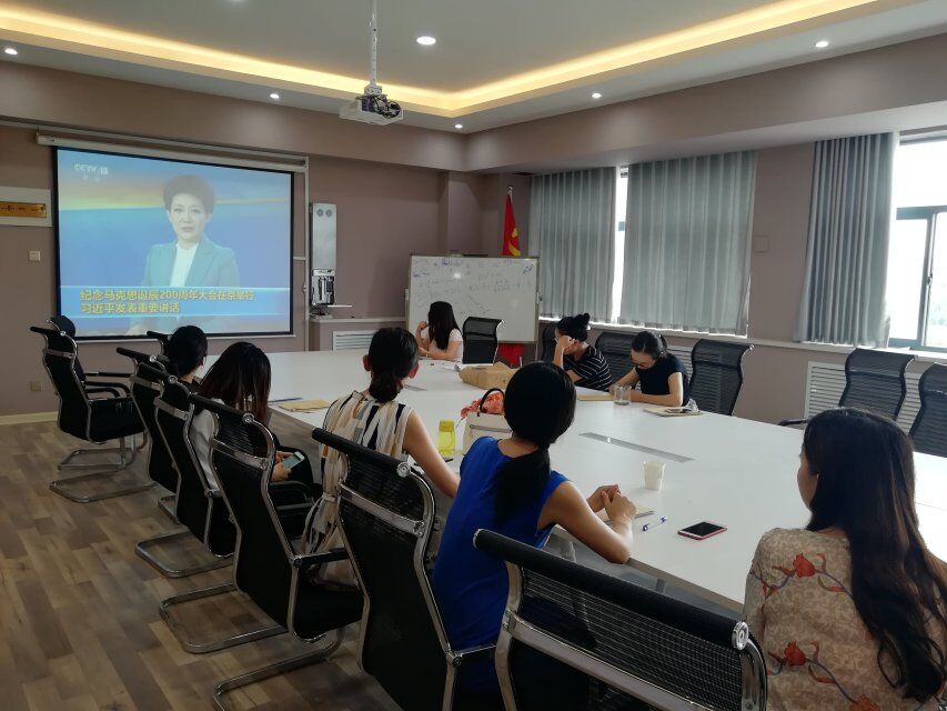 第一是学习近平总书记在《在纪念马克思诞辰200周年大会上的重要讲话》精神,大家首先观看了视频材料“新闻联播”中关于习近平总书记在纪念马克思诞辰200周年大会上的重要讲话的相关报道,随后展开谈论发言。蔡娜娜“我们要深刻领会讲话精神的丰富内涵和精神实质,从小学习马克思主义,总书记的讲话又让我们重温了一遍”;孟杰“马克思主义的基本原理已经融入了我们的“三观”,如经济基础决定上层建筑、劳动人民是真正的英雄等等,生活中处处都在使用。”