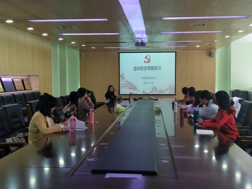 2018年10月29日,护理学院全体职工党员在行政楼第三楼会议室开展10月份政治理论学习。本次活动共有四个方面内容。