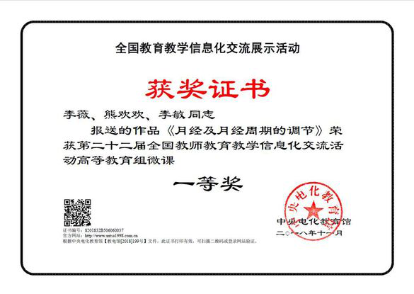 本次大赛参赛作品6082件,其中高等院校、中职参赛1824件作品中148件杀入决赛。我院李薇的《月经及月经周期的调节》和韩江红的《怦然“心”动—心肺复苏急救技术》荣获一等奖,张一莉的《掌握心肺复苏一切“救”在身边》荣获高等教育组二等奖。