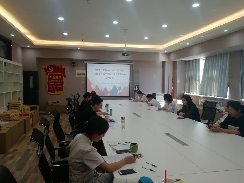 5月22日下午,护理学院党总支在院系楼四楼会议室开展“深化产教融合,加强创新创业,积极推进我校向应用型健康服务业大学转变”暨第二次思想大讨论活动。护理学院全体教师参加。