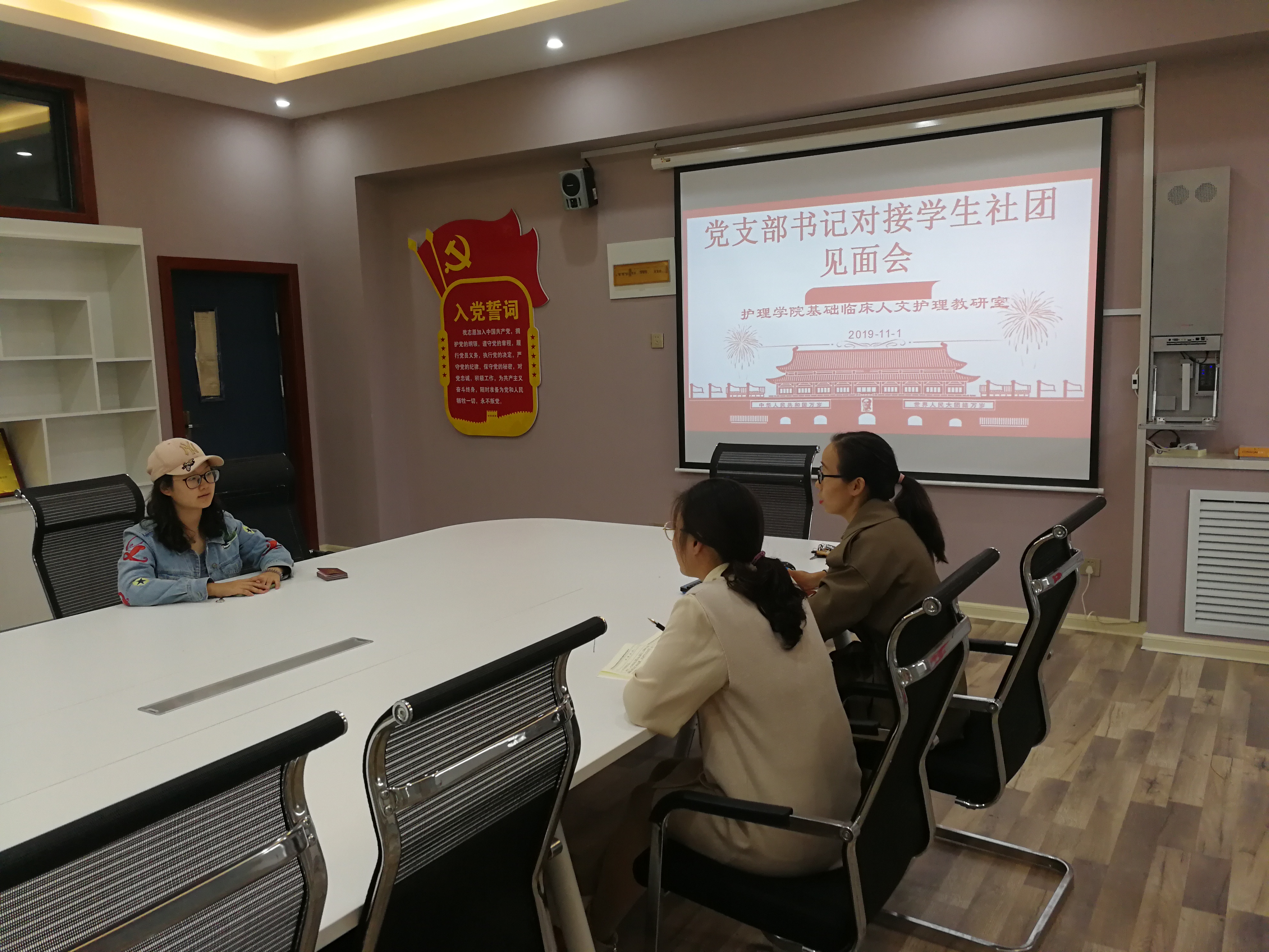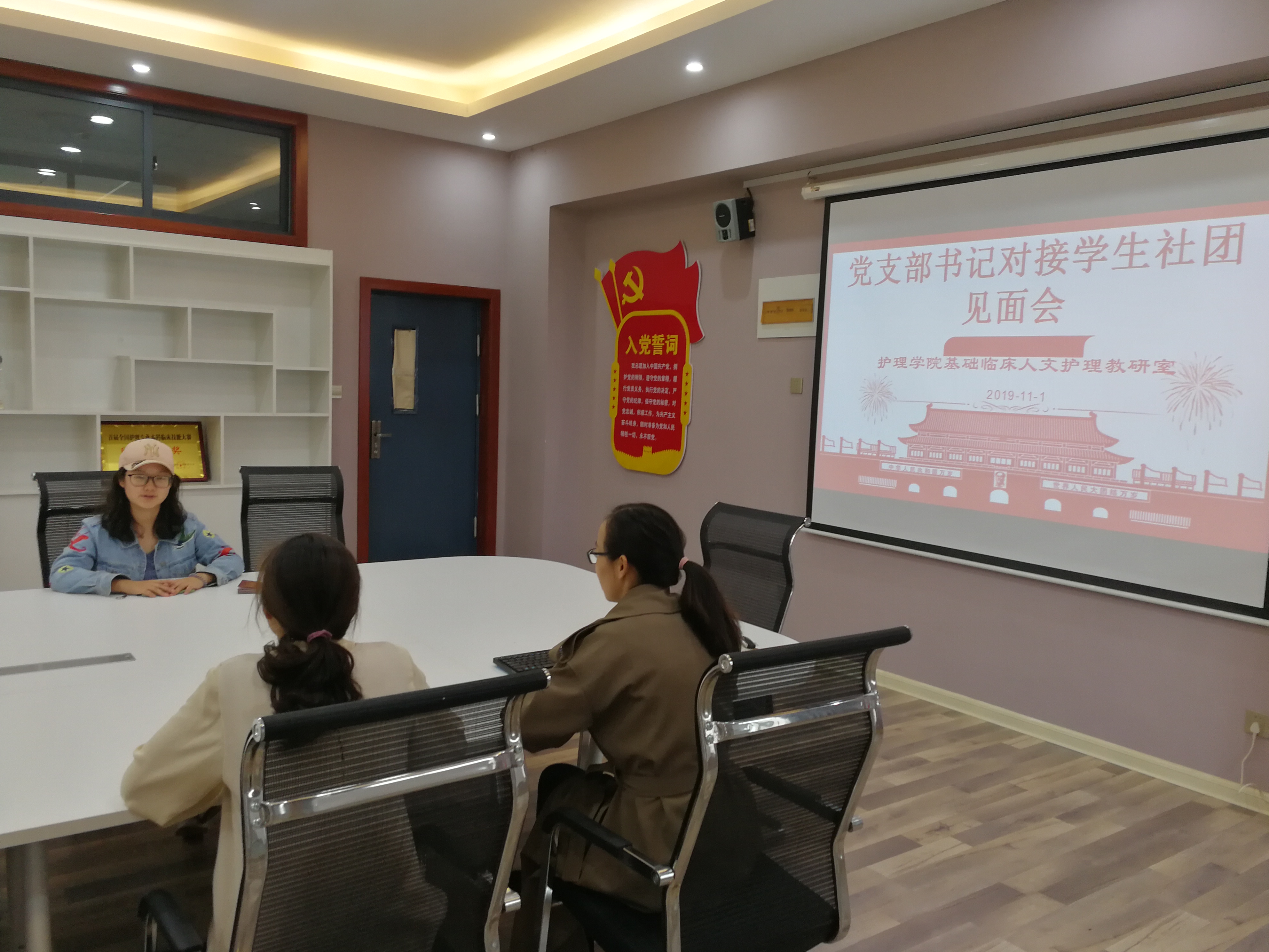 根据新乡医学院三全学院《关于推进党支部书记联系指导学生社团的意见》工作要求,护理学院基础临床人文护理党支部书记与学生社团“健康天使协会”主要负责人,于2019年11月1日下午在护理学院四楼会议室举行见面会。