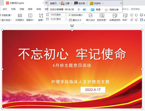 617日上午9点,护理学院党总支临床人文护理党支部在QQ群线上开展了“不忘初心 牢记使命”主题党日活动。活动由支部副书记李丹主持,全体党员及入党积极分子参加。
