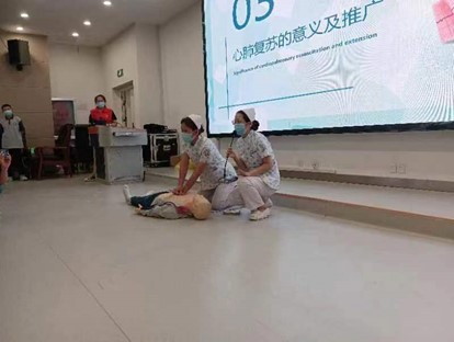 护理学院高莹莹及杨炀两位老师应邀走进初中校园,来到平原示范区第一初级中学,带来一场别开生面的应急救护知识讲座培训。通过采取“理论讲授+现场演示等形式,向师生重点讲解了“心肺复苏术”、“海姆立克急救法”急救知识和操作要点。两位老师讲解清晰明了,生动活泼,激发了师生的浓烈的学习兴趣。并邀请大家亲自体验,同学们表现踊跃,积极参与,现场学习氛围热烈。