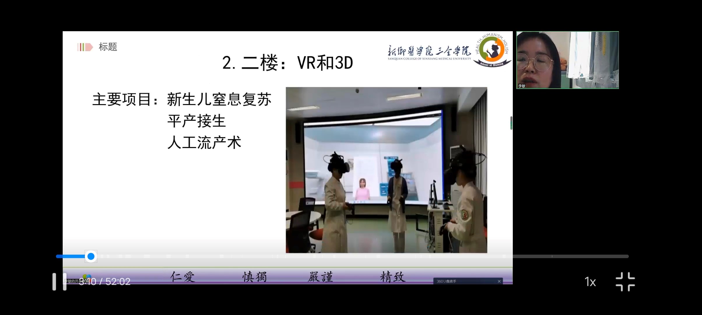 首先,李敏老师介绍了虚拟仿真技术概念及其在医学教育中的应用现状;继而结合护理学院虚拟仿真教学条件详细阐述了授课过程中的具体应用。在教学过程中,老师们精心设计多项教学案例,不仅充分发挥虚拟仿真的沉浸、交互等技术特点,而且将虚拟仿真技术和高仿真情景模拟等多种教学方法结合在一起,将技术为教学服务,打造了线上线下结合、虚实结合的教学模式,有效解决了妇产科及助产学实践教学中的“看不见,进不去”难点问题以及伦理问题。