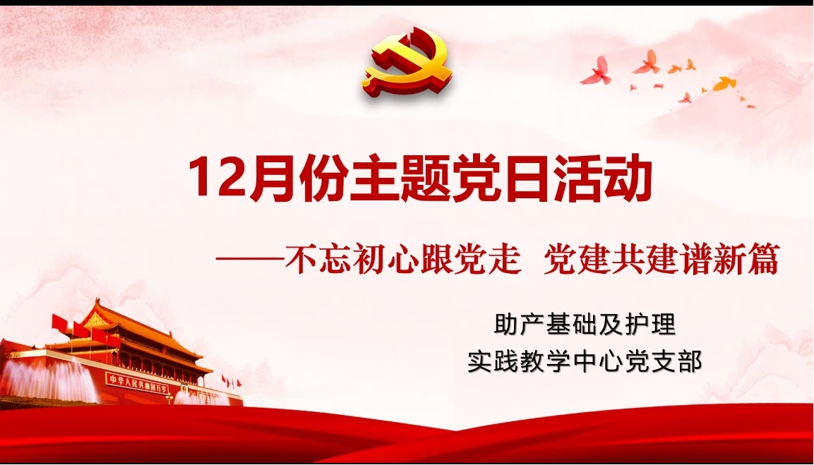 12月20日上午,助产基础及护理实践教学中心党支部在腾讯会议线上开展十二月份主题党日活动,主题为:不忘初心跟党走,党建共建谱新篇,由支部副书记韩浩主持。