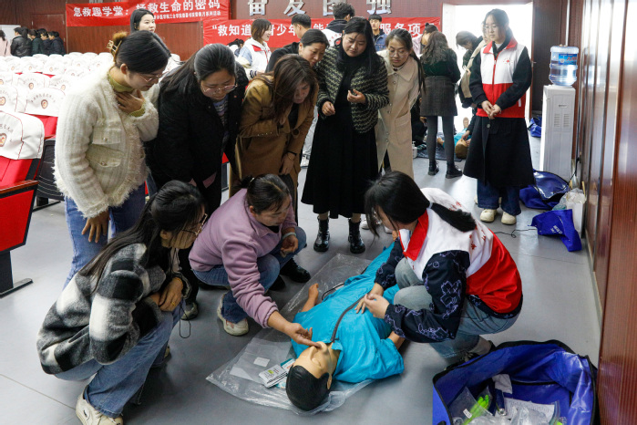 3月20日上午,为进一步普及应急救护知识,增强安全意识,提高教师在突发事件中的应变能力,守护学生的健康安全,德馨书院联合校党委办公室、校团委、护理学院共同前往平原示范区龙源小学开展“救知道”赋能课堂志愿服务活动,龙源小学90余名教师参加了此次培训活动。