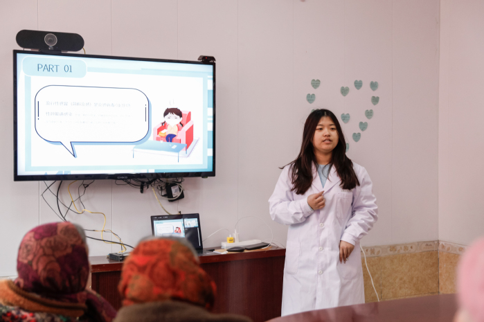 针对老人们颇为关心的春季常见病预防问题,志愿者也通过PPT、动画的方式做了详细的讲解:“春季想要预防感冒发生,就要注意做好身体的防寒保暖工作,避免受到冷空气的刺激,并保持健康清淡的饮食习惯,这样就能有效降低感冒的发病几率。”
