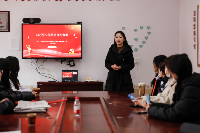 “咱们刘庵村一直以来也非常重视精神文明建设,重视教育,村两委提出‘教育兴村、产业富村’的工作思路,培养了许多高学历人才,将崇文重教理念纳入村规民约等等,这其实就是习近平文化思想的基层实践,能更好满足人民日益增长的精神文化需要,在加快提高社会文明程度上探索新经验、展现新作为。”我校马克思主义学院宋潘婷老师的理论宣讲,生动,接地气,村民们听得十分认真。
