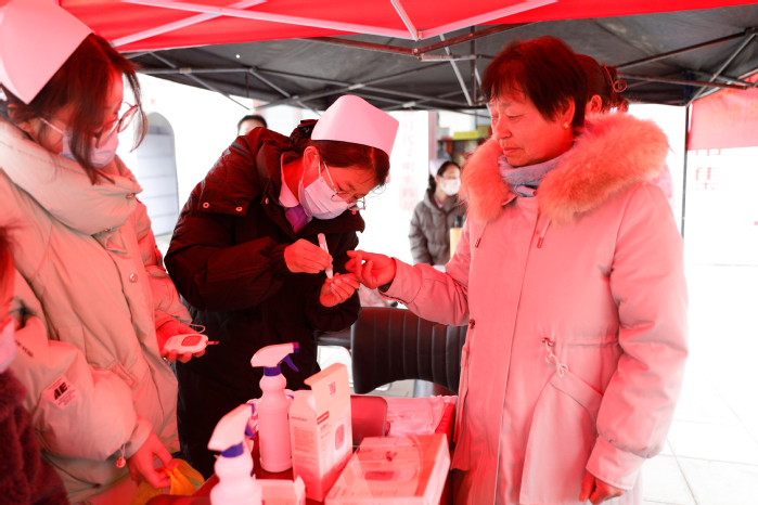 谁说怕疼是孩子们的“专利”?在测血糖摊位前,80岁的刘秀梅老人刚一坐下,就说:“我怕疼,你们一定要轻一点。”志愿者笑着说,不疼不疼,放心吧。可刘秀梅老人还是不放心地说:“别看我年龄大了,可就是怕扎针,紧张!”于是,志愿者一遍和她拉家常,一遍准备着,趁她放松的时候,快速施针取血。“奶奶,你真棒!”测完血糖后,志愿者们还不忘夸上几句,这让老人心里很受用,脸上也随之笑开了花。