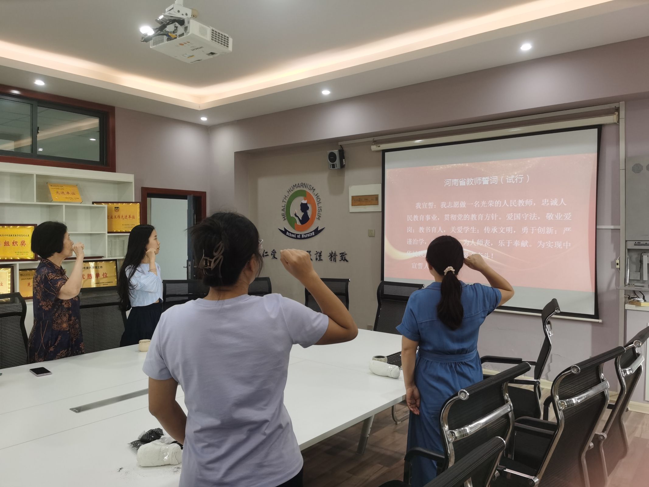 活动伊始,全体教师观看2024教师节主题感人瞬间微视频《同行一程 感恩一生》《教育家精神》。随后,全体教职工举行了宣誓活动,大家右手举拳,庄严承诺:我志愿做一名光荣的人民教师,忠诚人民教育事业,贯彻党的教育方针。爱国守法,敬业爱岗;教书育人,关爱学生;传承文明,勇于创新;严谨治学,启智求真;为人师表,乐于奉献。为实现中华民族的伟大复兴而努力奋斗!