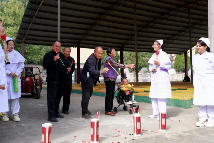 活动现场,我院师生为当地居民开展测量血压、测量血糖、健康科普和喜闻乐见的传统体育活动,如套圈、投壶游戏等,活动现场气氛热烈,得到了附近群众的积极参与和一致好评。