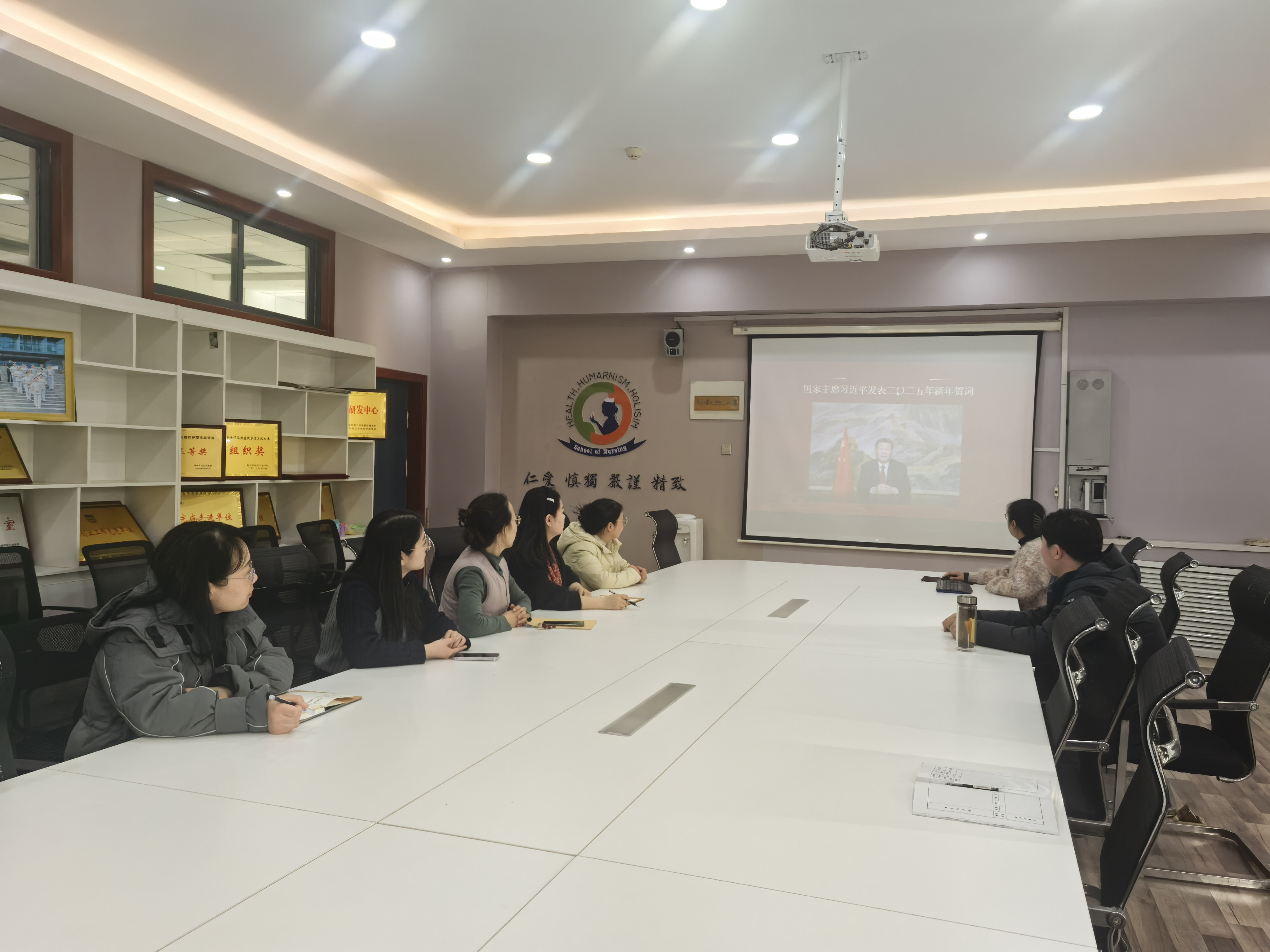 首先,由李丹同志领学“习近平:以中国式现代化全面推进强国建设、民族复兴伟业”、“中共中央政治局召开民主生活会强调 巩固深化党纪学习教育成果 在加强党的纪律建设上发挥示范引领作用 中共中央总书记习近平主持会议并发表重要讲话”及“河南省教育厅召开2025年工作务虚会”等内容,随后共同观看“国家主席习近平发表二〇二五年新年贺词”视频。