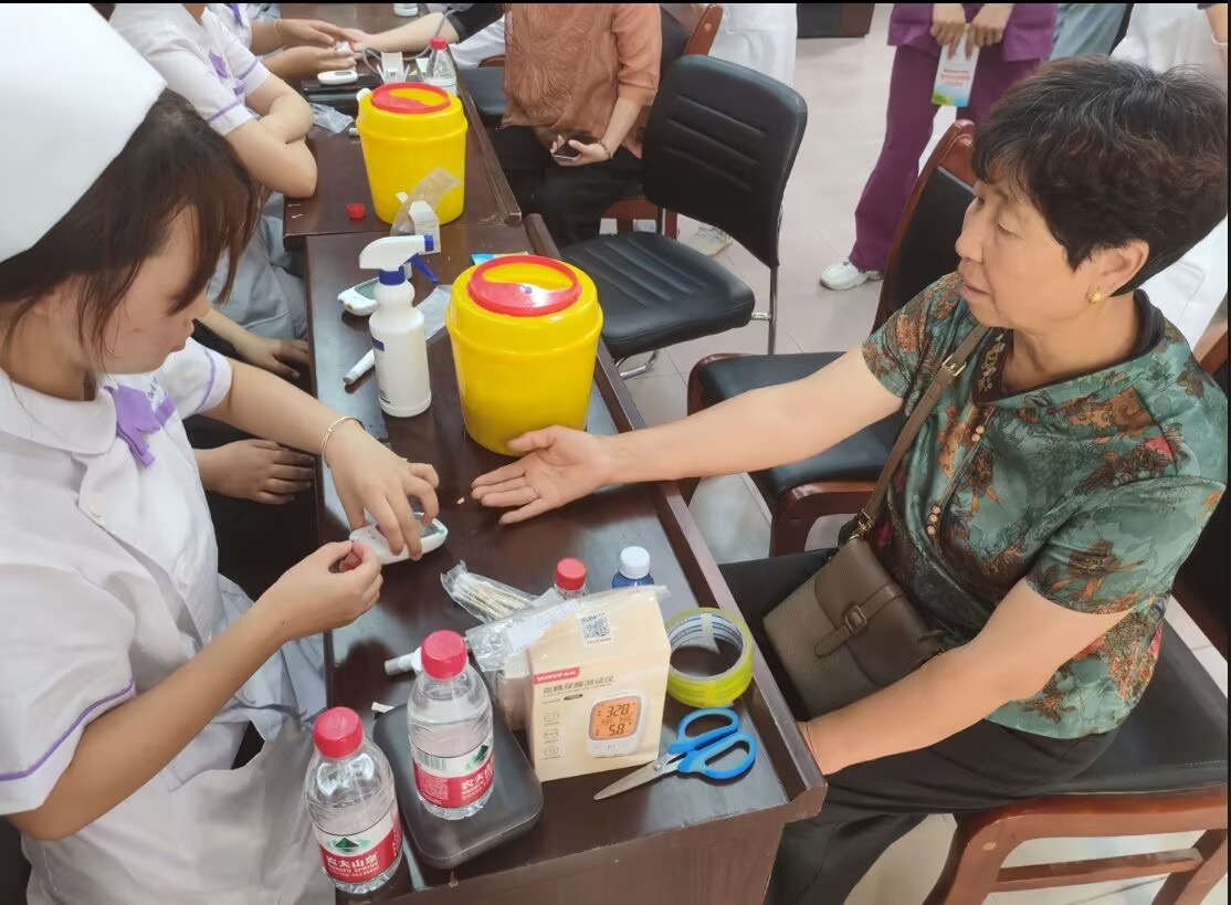 6月19日,团队走进新乡市原阳县新庄村,以专业践行使命,让急救知识“接地气”用行动诠释南丁格尔精神中“守护生命”的核心要义。队员们为村民开展血糖、血压健康体征检测,以玉米秸秆模拟气道异物场景,指导村民练习海姆立克法与人工呼吸配合操作,并借助AI模拟人精准纠正动作。当晚,村文化广场的急救技能竞赛正如火如荼,村民们在竞赛中强化学习效果。当看到58岁的王阿姨熟练完成整套急救操作,韩浩老师感慨地说:“知识只有接上地气,才能真正救人!”团队成员将专业知识转化为贴近生活的实践指导,让急救技能真正走进村民心中,在细微处传递对生命的关怀。6月23日,在葛韩庄一场现代科技与历史文物的“对话”震撼上演。团队结合古籍记载讲解急救原理,当1950年代的牛皮急救箱与AI模拟人并置展示,田平平老师指出:“这不仅是器物的对比,更是一场跨越时空的生命教育。”从历史中走来的急救文物,承载着先辈们守护生命的初心;现代科技赋能的AI模拟人,展现着新时代急救技术的革新。两者的碰撞,让参与者深刻感受到急救事业的传承与发展,南丁格尔精神在历史与现实的交织中愈发熠熠生辉。