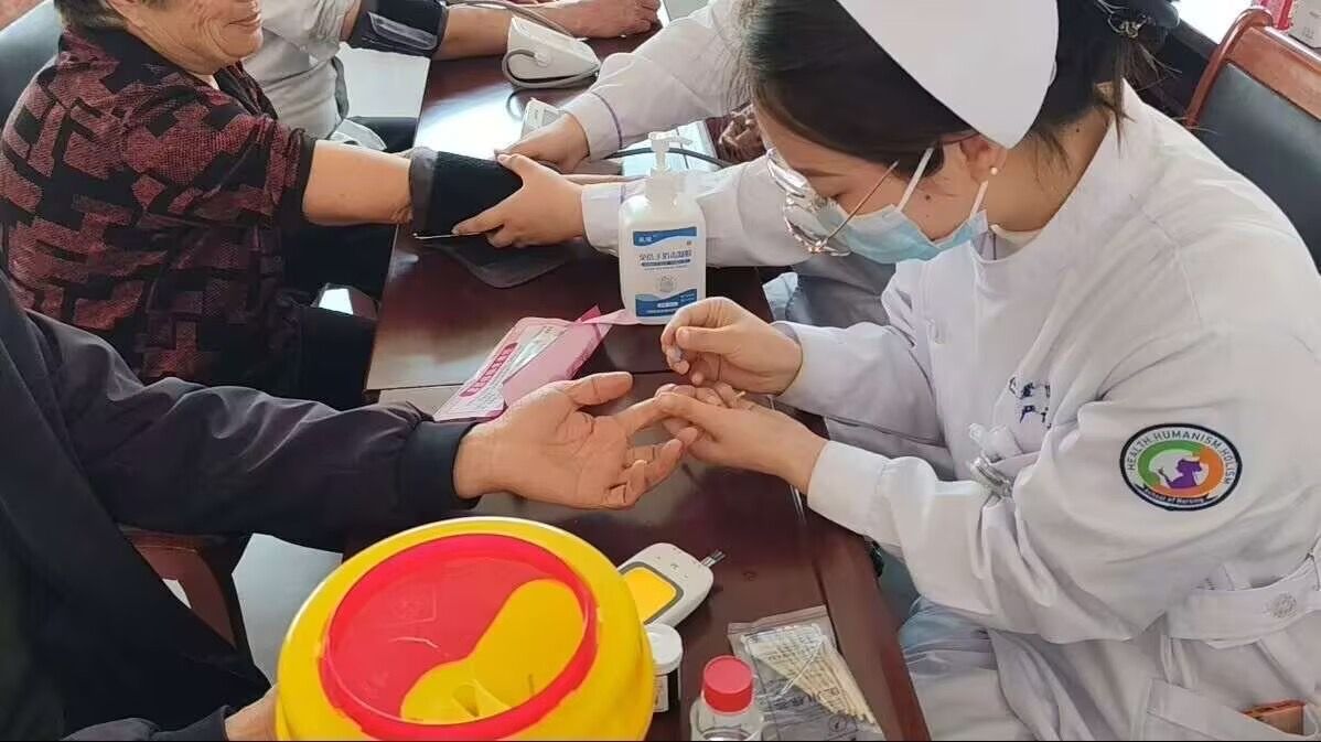 6月19日,团队走进新乡市原阳县新庄村,以专业践行使命,让急救知识“接地气”用行动诠释南丁格尔精神中“守护生命”的核心要义。队员们为村民开展血糖、血压健康体征检测,以玉米秸秆模拟气道异物场景,指导村民练习海姆立克法与人工呼吸配合操作,并借助AI模拟人精准纠正动作。当晚,村文化广场的急救技能竞赛正如火如荼,村民们在竞赛中强化学习效果。当看到58岁的王阿姨熟练完成整套急救操作,韩浩老师感慨地说:“知识只有接上地气,才能真正救人!”团队成员将专业知识转化为贴近生活的实践指导,让急救技能真正走进村民心中,在细微处传递对生命的关怀。6月23日,在葛韩庄一场现代科技与历史文物的“对话”震撼上演。团队结合古籍记载讲解急救原理,当1950年代的牛皮急救箱与AI模拟人并置展示,田平平老师指出:“这不仅是器物的对比,更是一场跨越时空的生命教育。”从历史中走来的急救文物,承载着先辈们守护生命的初心;现代科技赋能的AI模拟人,展现着新时代急救技术的革新。两者的碰撞,让参与者深刻感受到急救事业的传承与发展,南丁格尔精神在历史与现实的交织中愈发熠熠生辉。