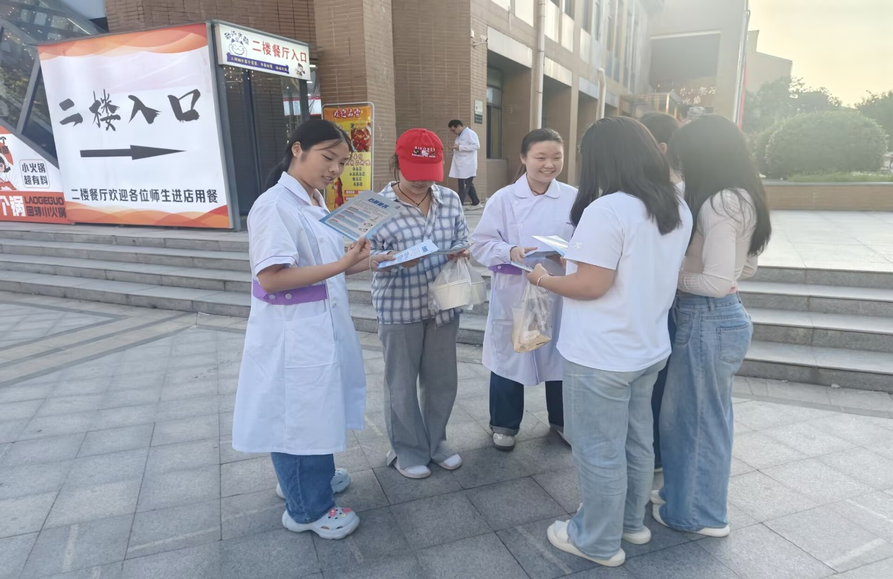 活动中,护理学院志愿者们在校园主干道、食堂、宿舍区等场所,向同学们发放精心设计的急救知识宣传单。宣传单以心肺复苏、海姆立克急救法、创伤包扎为核心,通过步骤图解、案例说明等形式,将专业急救知识转化为学生易理解、易掌握的实用内容,同时还涵盖了日常健康管理、急症预防等拓展知识。一位同学拿到宣传单后仔细研读,与同伴讨论起急救细节。志愿者们还在现场结合校园生活场景,讲解急救技能的应用时机,让知识真正融入学生日常。