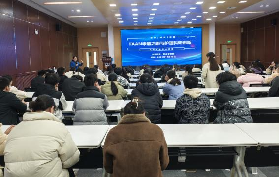 创新驱动发展,科研赋能健康。在学校科技活动月热烈推进的关键阶段,护理学院联合科研处开展专题讲座。11月19日下午,美国护理科学院院士(Fellow of American Academy of Nursing, FAAN)张金华教授受邀作题为“创新·成长·突破——FAAN申请之路与护理科研创新”的专题分享。护理学院各级领导、全体教师及学生代表百余人参会,报告由科研处处长靳瑞霞主持。
