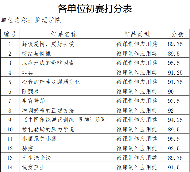 护理学院第十一届教育教学信息化大赛初赛结果公示