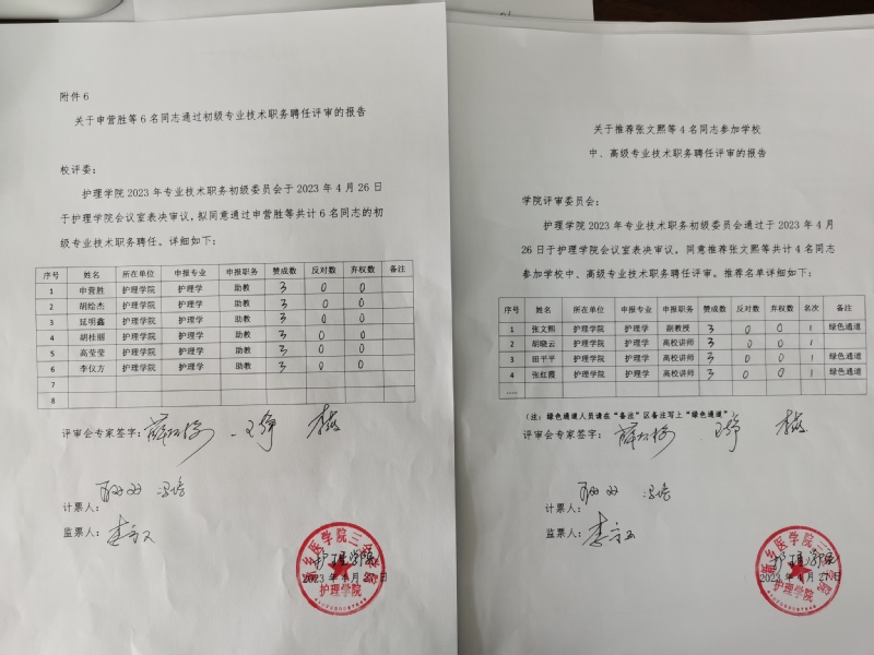 关于2023年度护理学院职称评审材料...