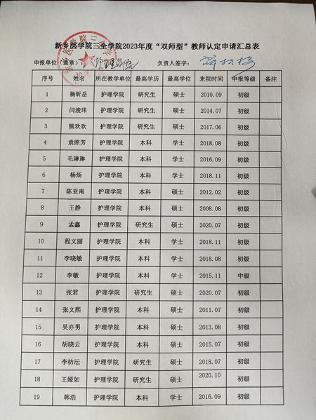 根据《新乡医学院三全学院专业技术职务聘任管理方法》要求,护理学院...