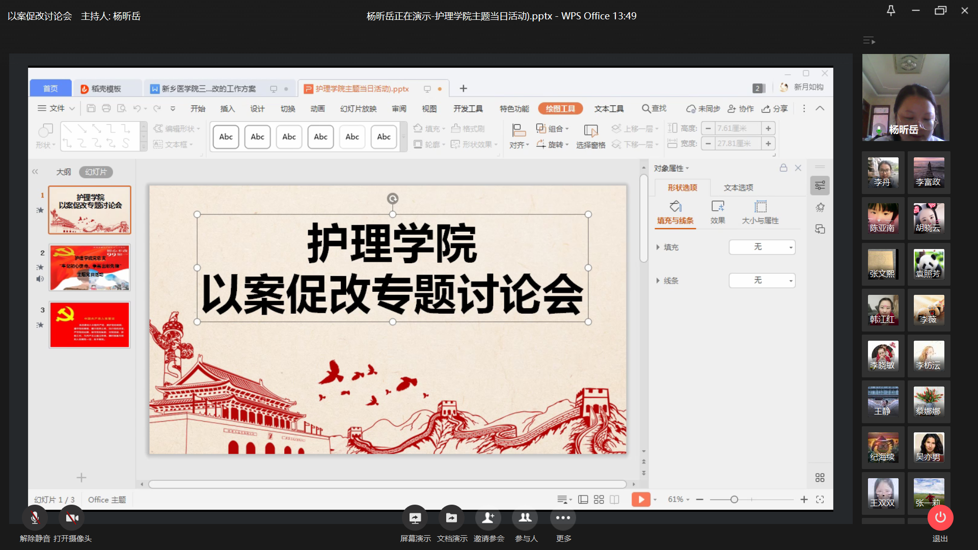 7月24日上午,为明确学校“转设”任务,动员全体教师积极参与“转设”工作,推进“转设”工作顺利开展,护理学院通过企业微信召开“转设”工作动员会议,就学校“转设”工作进行动员部署。会议由副院长王...