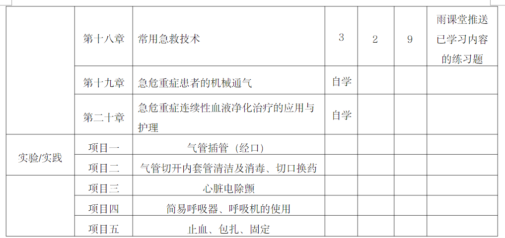 急危重症护理学是针对大三年级开设的一门专业必修课,是临床护理的主要课程之一。本课程结合护理学和急诊医学、重症医学,以现代医学科学和护理学理论为基础,以挽救患者生命、提高抢救成功率、促进患者康复、减少伤残率为目的,是研究急、危、重症患者抢救、护理和科学管理的一门专科护理课程。