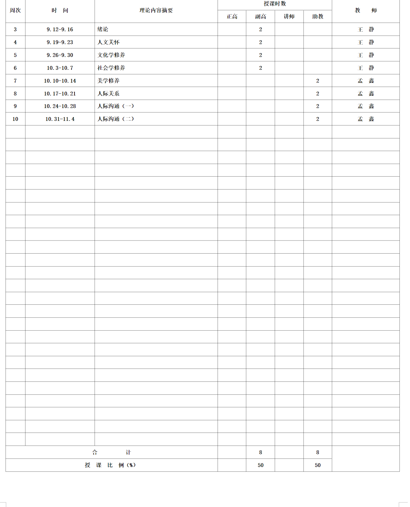承担单位 护理学院 授课名称 护士人文修养 课程代码 0211002 授课对象 本科 年级 2022 专业 护理学