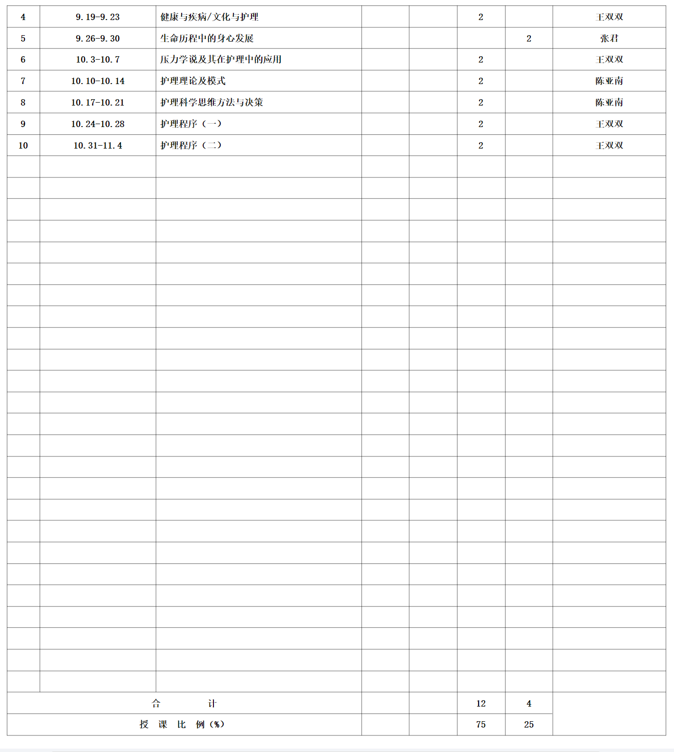 承担单位 护理学院 授课名称 护理学导论 课程代码 0211001 授课对象 本科 年级 2022级 专业 护理学 学时 16 学分 1 考试形式 考试 2022年 6 月 21日
